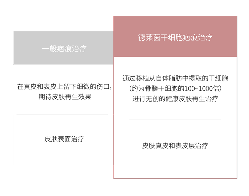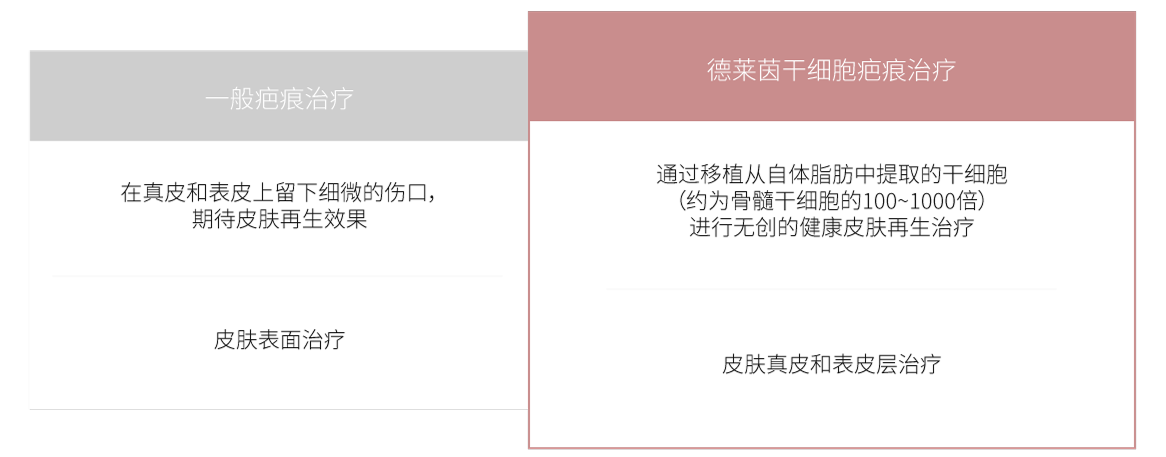 一般疤痕治疗 VS 德莱茵干细胞疤痕治疗