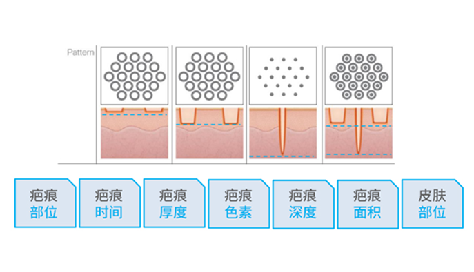 *按照疤痕产生的时间,深度,位置,大小,宽度,性质等个人差异,
