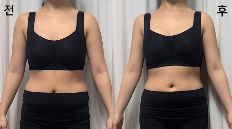 팔도 옆볼록이 정리되서 얄쌍해졌고 불룩하던 러브핸들은 정리되고 엉덩이도 만져보면 이전이랑 다른게 느껴져요